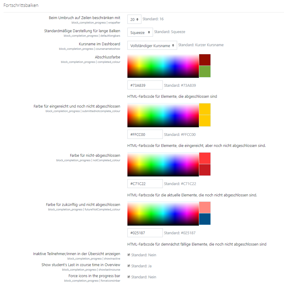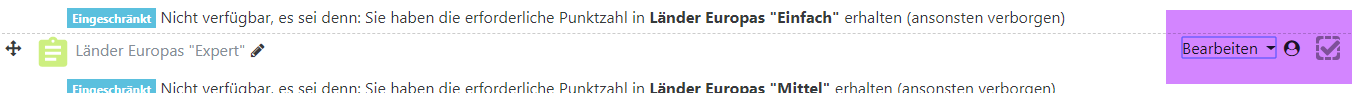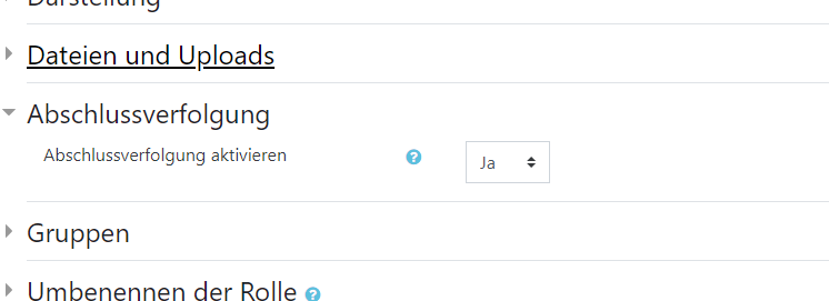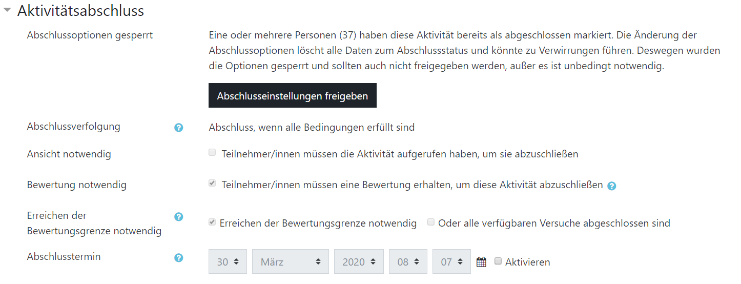 Ausserdem lohnt es sich bereits bei den einzelnen Elementen in einem Kurs zu überlegen, welche überhaupt für den Aktivitätsabschluss ausgewählt werden sollen.