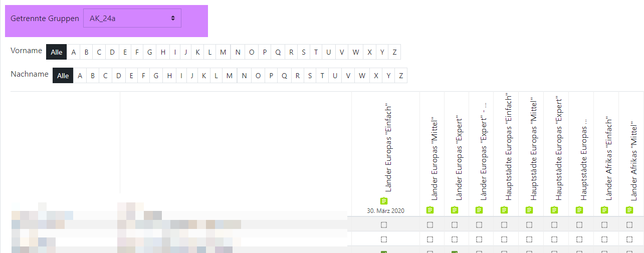 - Bewertung notwendig: Diese Einstellung verwende ich für Prüfungen, weil damit sehr schnell sichtbar wird, wer diese noch absolvieren muss (z.B. wegen Krankheit).