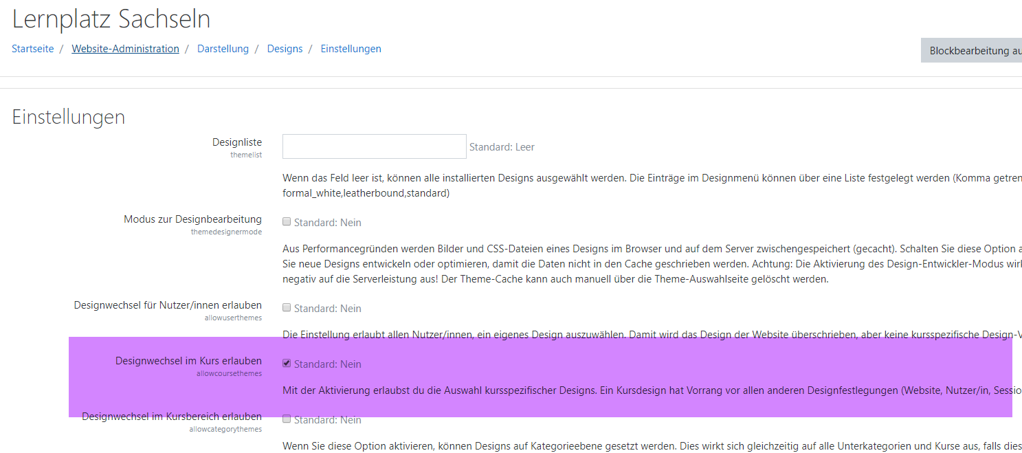 Noch ein Tipp: Für administrative Arbeiten stelle ich meine Moodle-Umgebung immer auf Englisch um, weil ich dann die meist bessere englische Dokumentation als Einleitung verwenden kann.