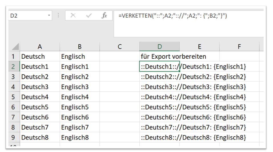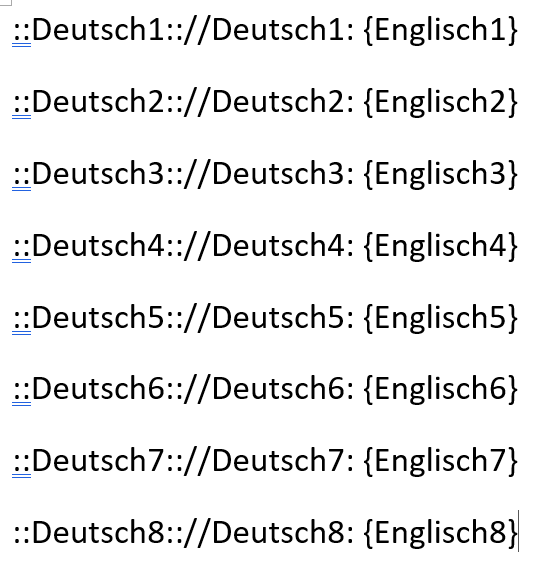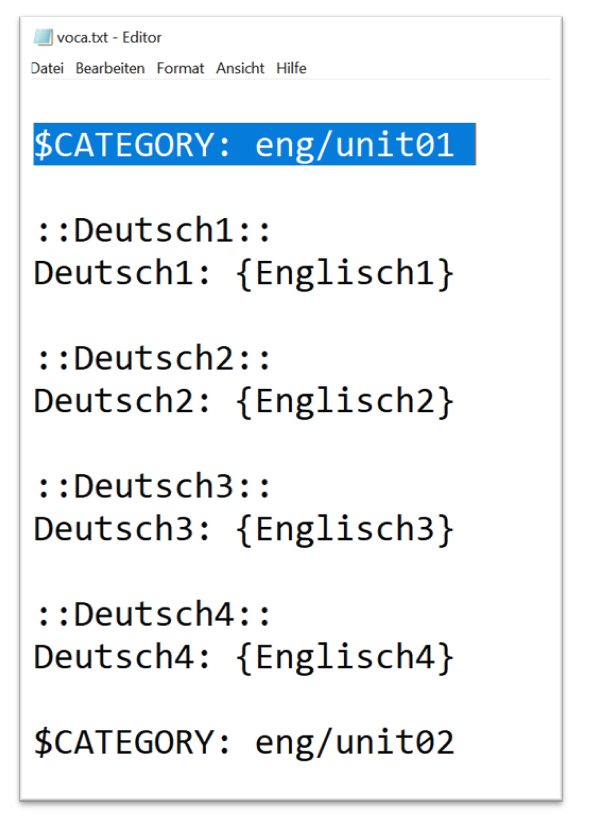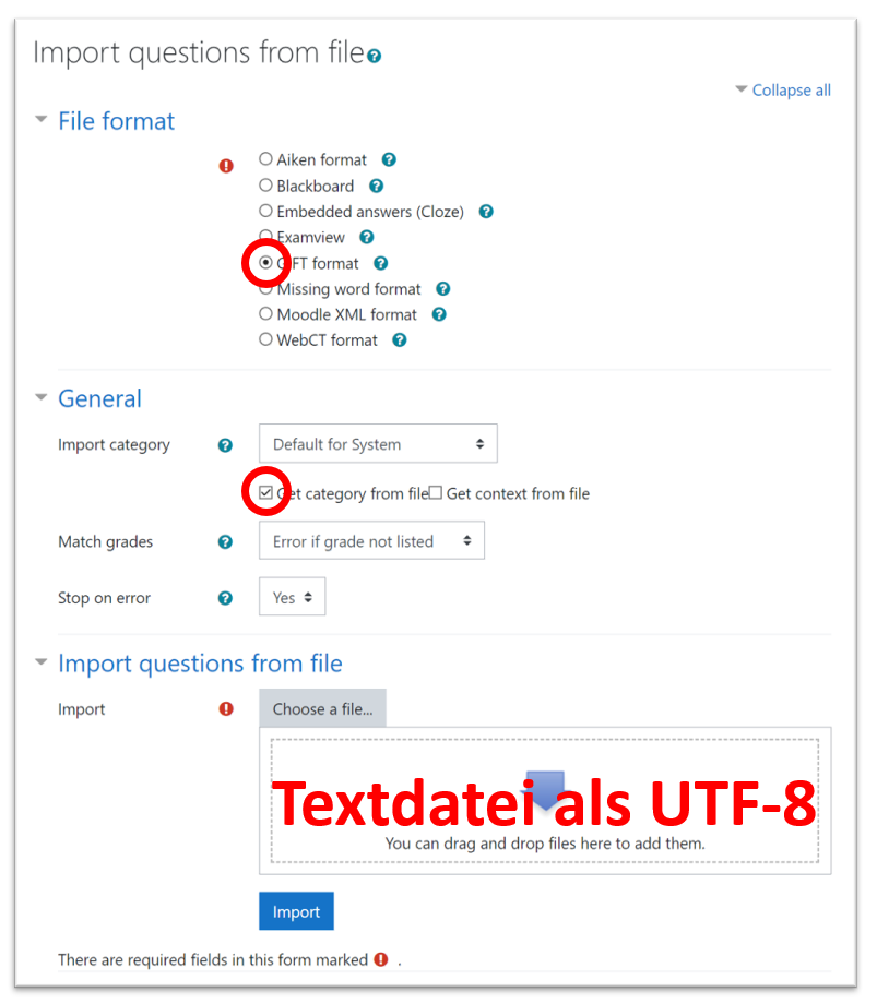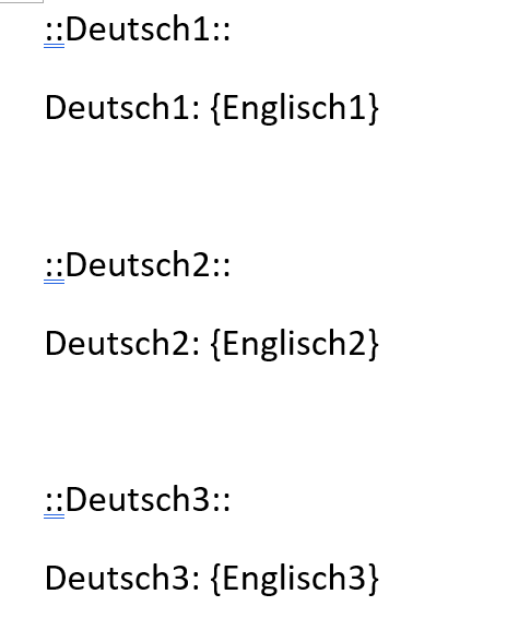Ich stehe vor der Aufgabe, grosse Mengen an Testfragen vom Typ "Kurzantwort" (txt) mit jeweils passenden Kategorien für Kursbereiche erstellen zu müssen. Die Wörterlisten aus verschiedenen Fremdsprachenlehrmittel wurden mir vom Verlag als Excel-Dateien zur Verfügung gestellt. Es sind insgesamt hunderte Wörter-Paare Deutsch / Fremdsprache. Leider scheint Moodle keinen direkten Import von CSV-Dateien zu kennen. Zur Auswahl stehen diverse moodle-eigene sowie xml-Formate, CSV fehlt aber. Dennoch finden sich in verschiedenen Foren Hinweise darauf, dass auch CSV funktioniert, ich finde aber keine passende Anleitung, wie diese Dokumente strukturiert werden müssen. Da auch beim Export weder Excel noch CSV oder Text zur Verfügung steht, ist es nicht ganz einfach, selber eine Vorlage zu entwickeln.